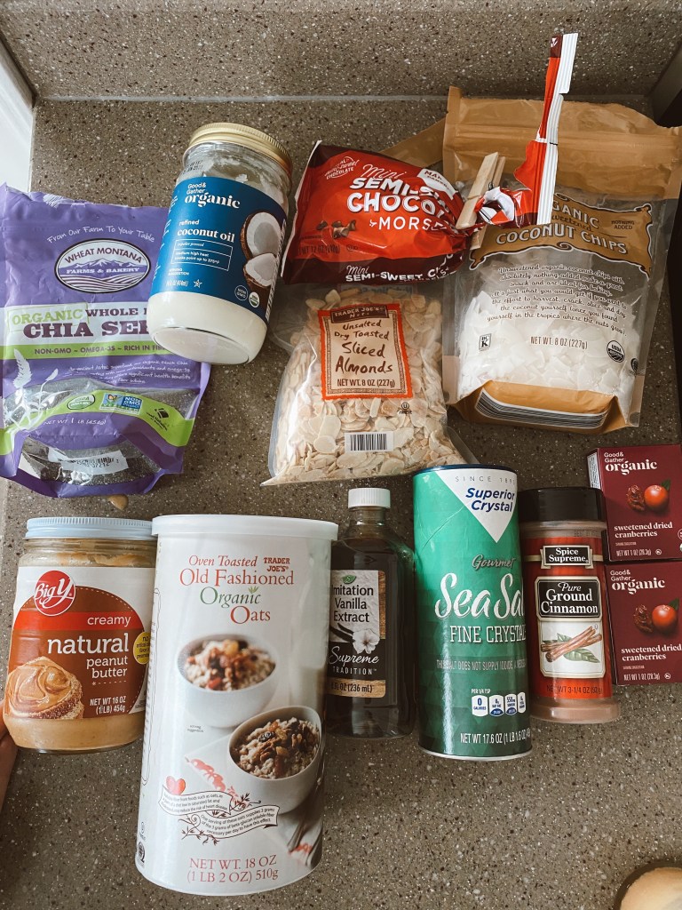 These are the ingredients you need! I forgot to add honey in this pic, so don’t forget that. It’s a key ingredient to get the bars to hold their shape.