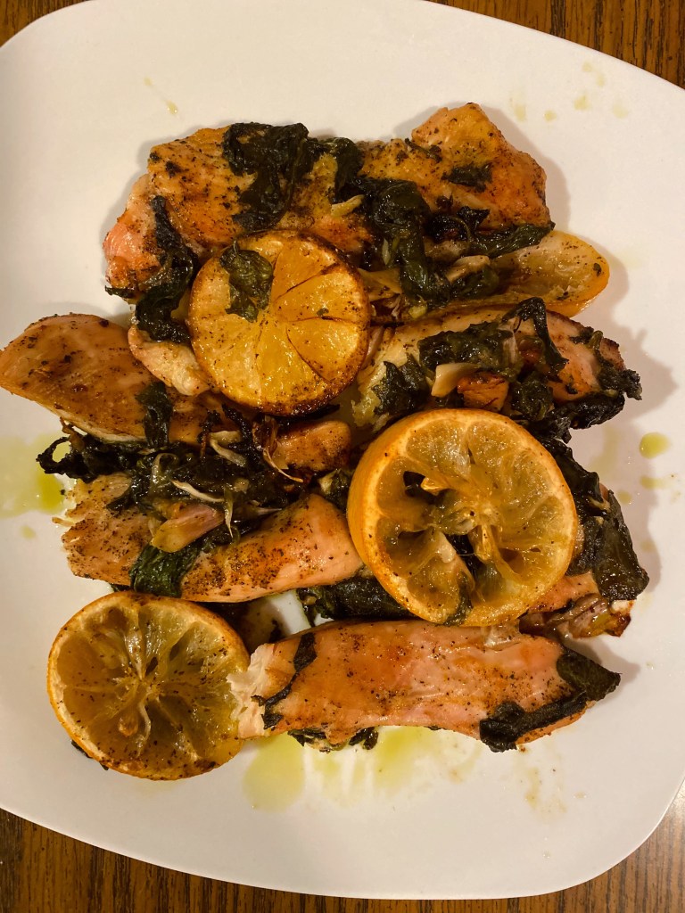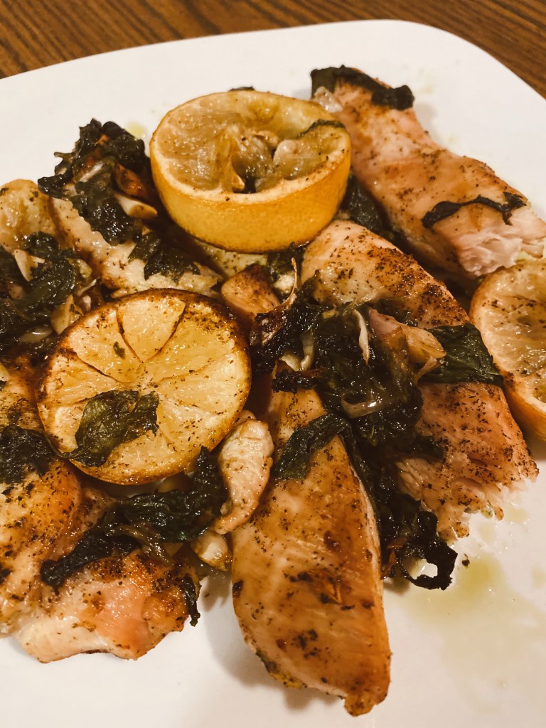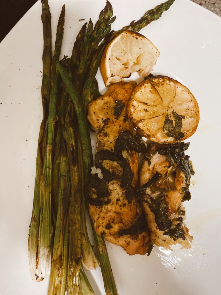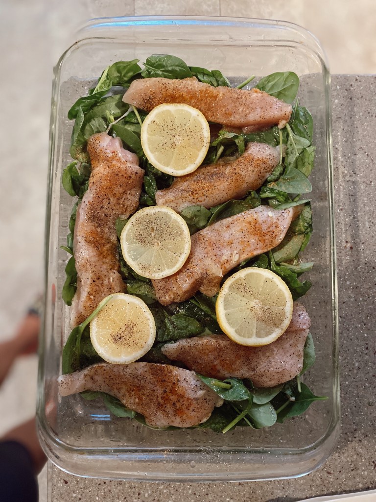 This recipe I’m sharing is perfect for summer nights and so flavorful and healthy. Chicken has great protein and is a lot leaner and better for you than red meat. If you are a beginner at cooking chicken (like me lowkey😂) – you can do this one!! It’s truly not hard and you could prep a lot at once and then put in the fridge for future meals for the week. It’s important to include dark leafy green vegetables every day. Spinach specifically is a great source of vitamin K, vitamin A, and vitamin C. Lemons make dishes very flavorful and offer vitamin C.