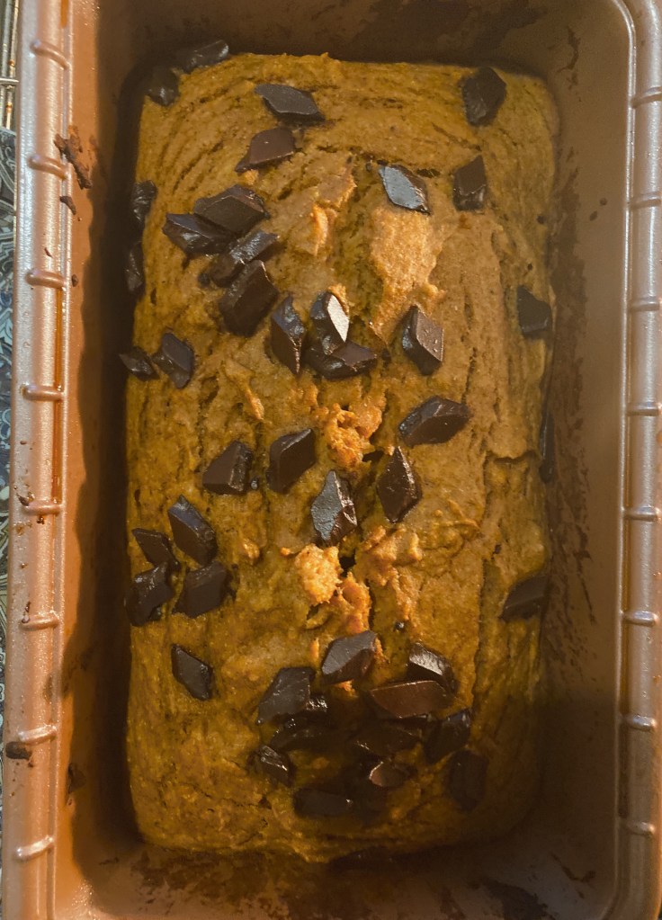 I read through many recipes online, but this one I found seems be the healthiest option. The bread came out super fluffy and had great flavor. This a great breakfast option with a side of fruit when you are sick of oatmeal/yogurt/traditional breakfasts. I will link the recipe down below but just wanted to let you know- I used coconut oil and opted for whole wheat flour. I also added a 1/2 cup of dark chocolate chips (chef’s kiss👌🏼) and extra cinnamon on top for added flavor. Also- make sure you chop the zucchini in very small pieces for best results.