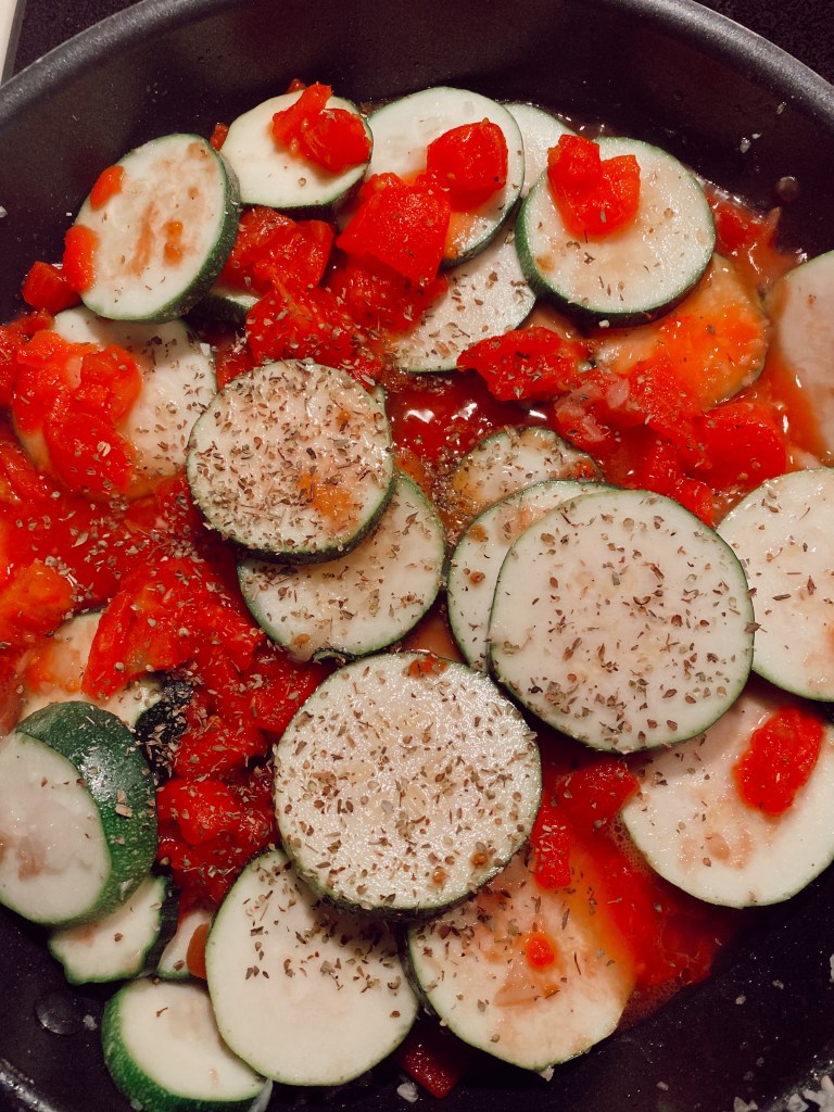 Stewed Zucchini w Tomatoes and Garlic